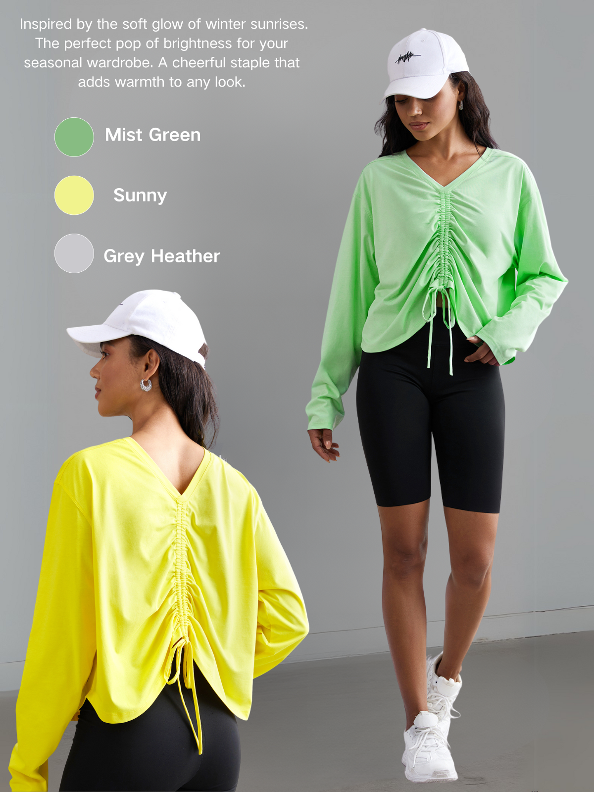 Workout Side-Cinch Rib Ruched Stretch Tank